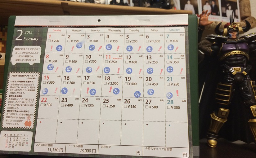 カレンダーには、毎日、100円とか、150円とか、350円とかの金額が書いてありそれを貯金するのだ。月に一度は必ず「2000円」とか「1000円」とか、それなりの高額日があるものの、基本は数百円。