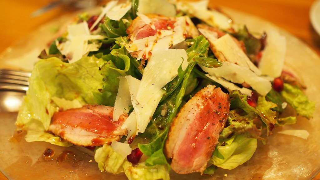 鴨肉とザクロとパルメザンのサラダ
